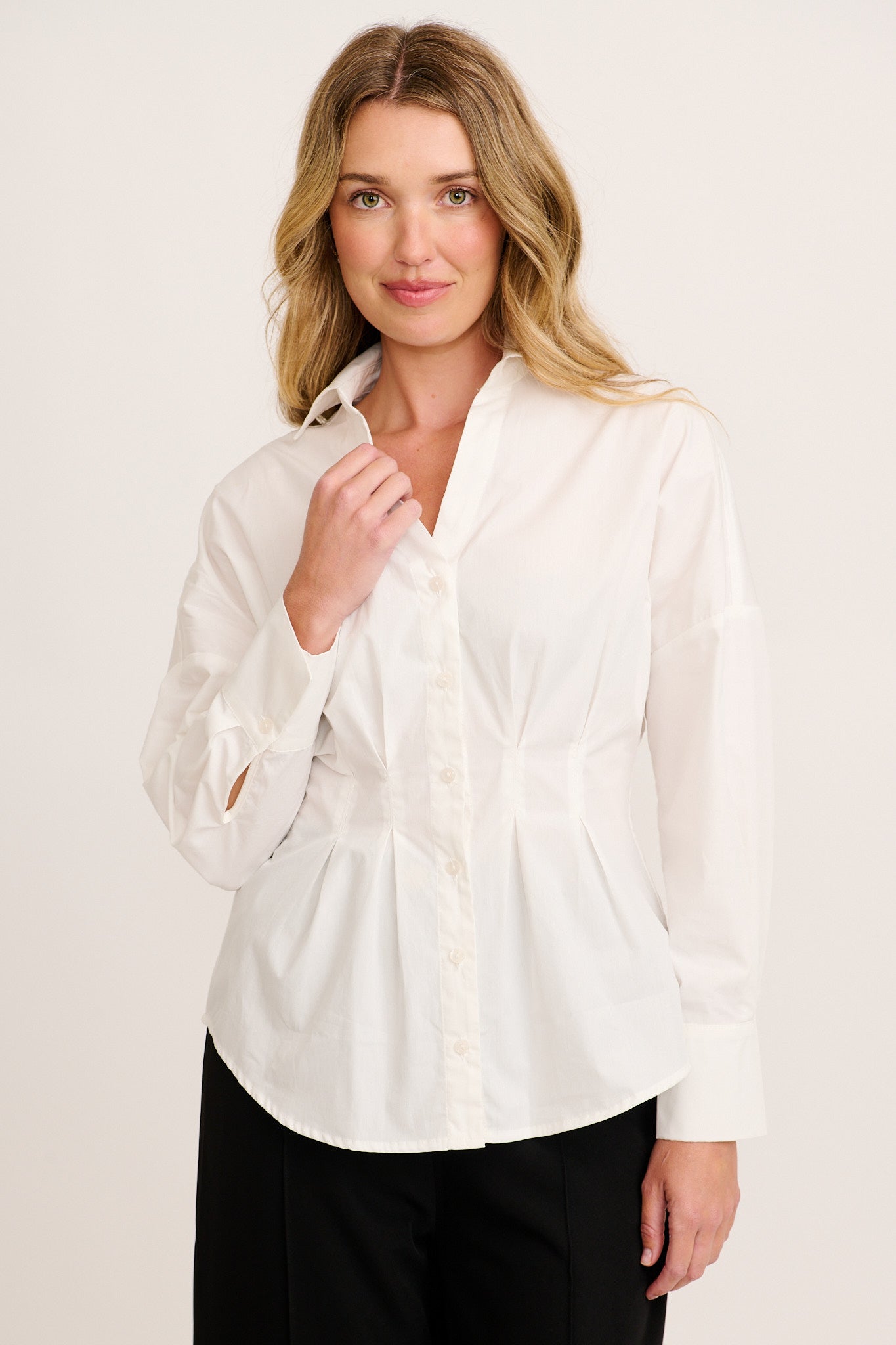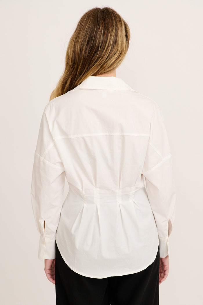 The Olana Shirt in White Cotton is a clean wardrobe essential designed for effortless styling. With its crisp white finish and classic cut, it brings versatility to workdays and weekends alike.