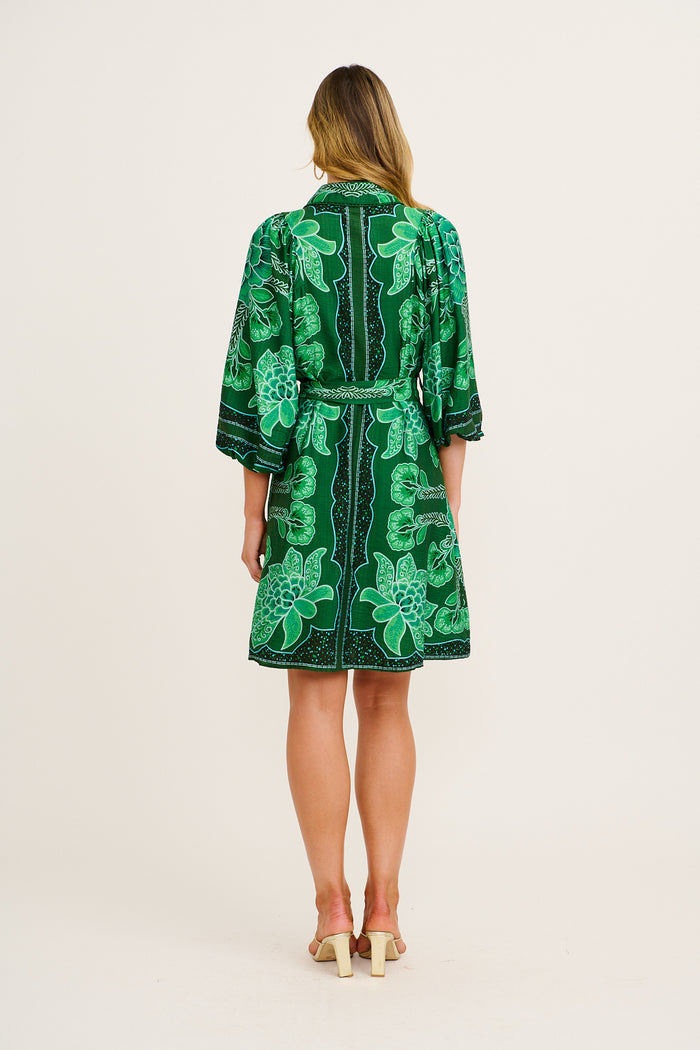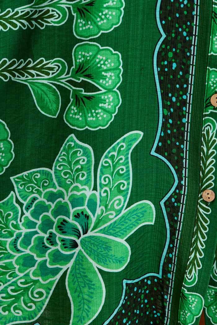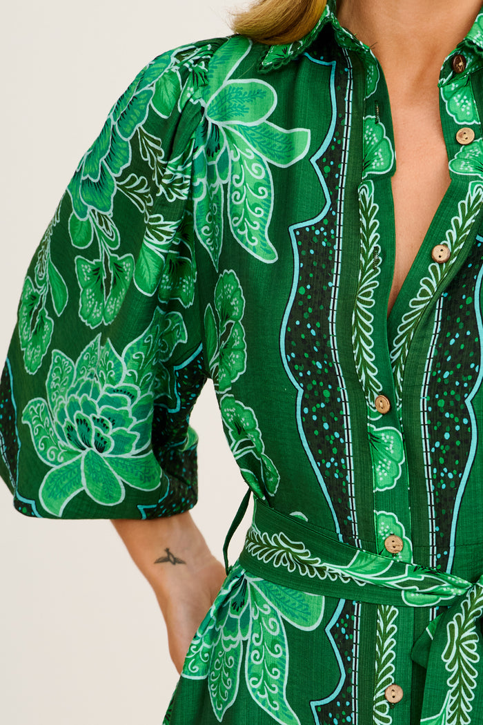 Risa Shirt Dress Emerald Floral Print Linen Blend