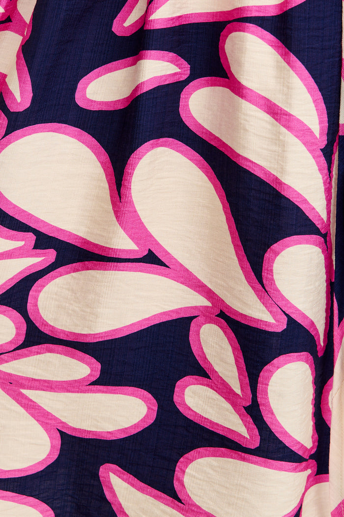 Navy with Pink Print Linen Blend